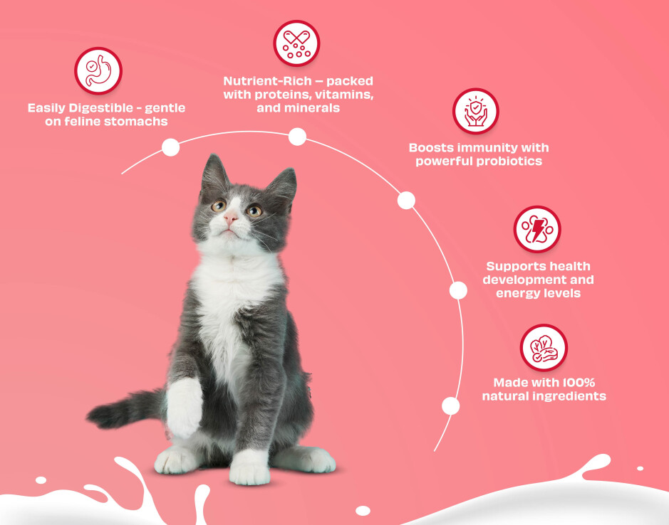 En general, los gatos no toleran bien la leche de vaca. El alto contenido de lactosa puede causar problemas estomacales e intestinales. La leche de cabra, por otro lado, es más fácil de digerir, contiene naturalmente menos lactosa y más ácidos grasos esenciales. Esto la hace ideal incluso para las pancitas de gato más sensibles.